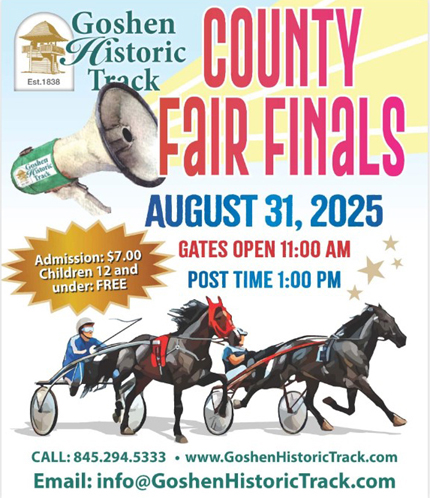 In conjunction with New York County Fair Finals racing at Goshen Historic Track, the Harness Racing Museum will be open on Sunday, August 31 from 10:00 a.m. to 3:00 p.m.